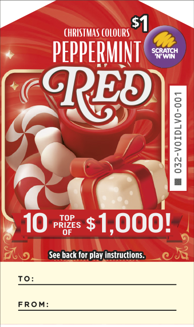 Christmas Colours has over $400,000 in Total Prizes with 10 Top Prizes of $1,000. Reveal 3 identical prize amounts to win that prize!